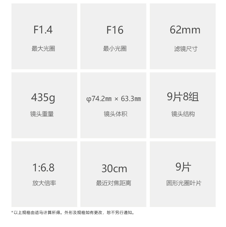 | 光圈叶片 | 9 片(圆形光圈叶) |