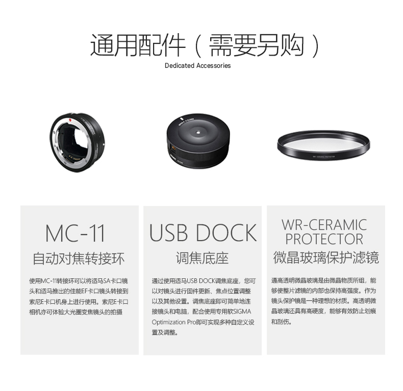 *本产品用于适马以外品牌相机,可能会产生部分不兼容的现象详情请见适马官方网站或垂询适马官方热线4008528080