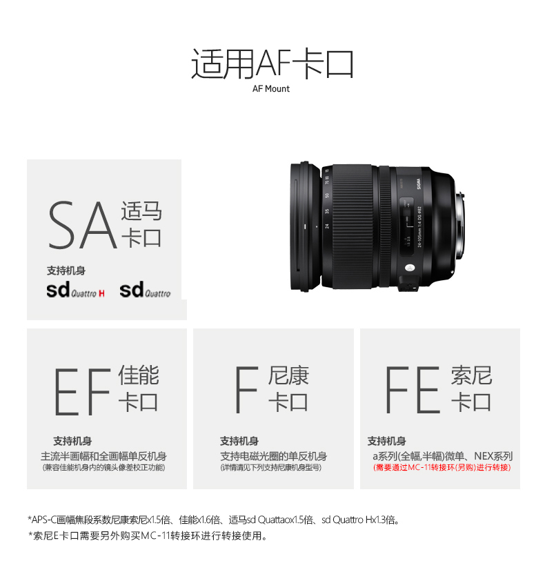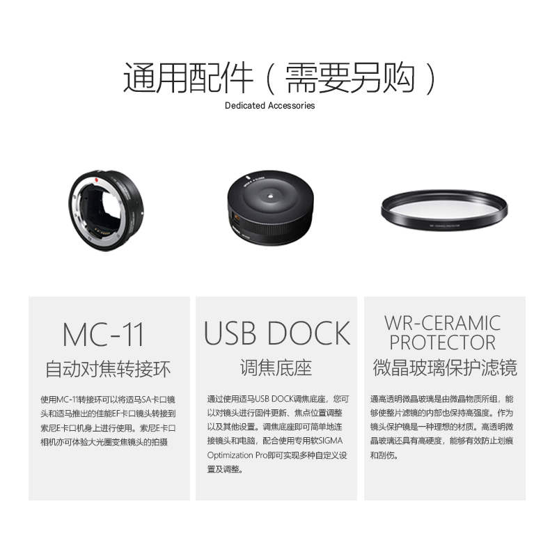 • *本产品用于适马以外品牌相机,可能会产生部分不兼容的现象详情请见适马官方网站或垂询适马官方热线4008528080