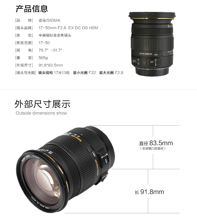 Sigma/适马 17-50mm F2.8 EX DC半画幅防抖风景人像挂机镜头宾得