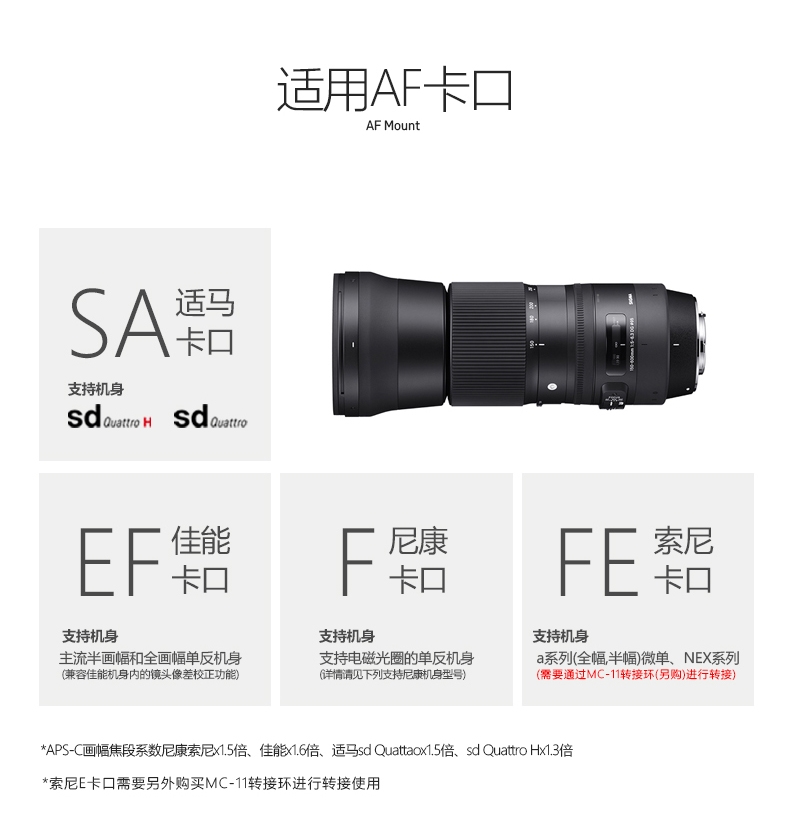 *本产品用于适马以外品牌相机,可能会产生部分不兼容的现象详情请见适马官方网站或垂询适马官方热线4008528080