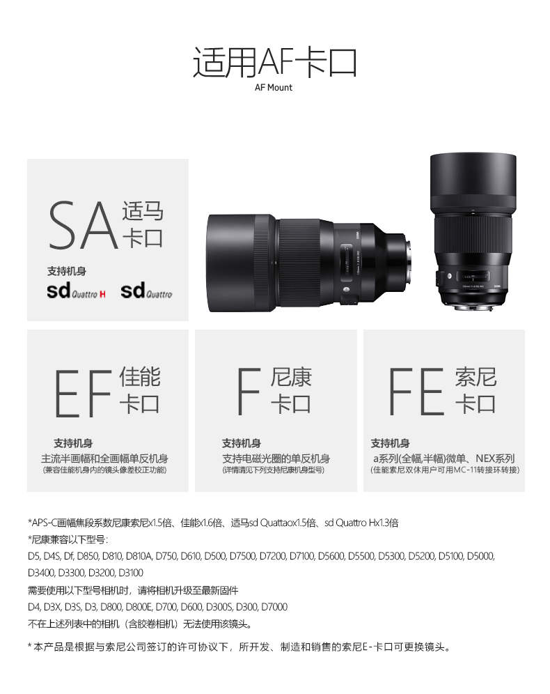 适马SA / 尼康F / 佳能EF / 索尼E / L