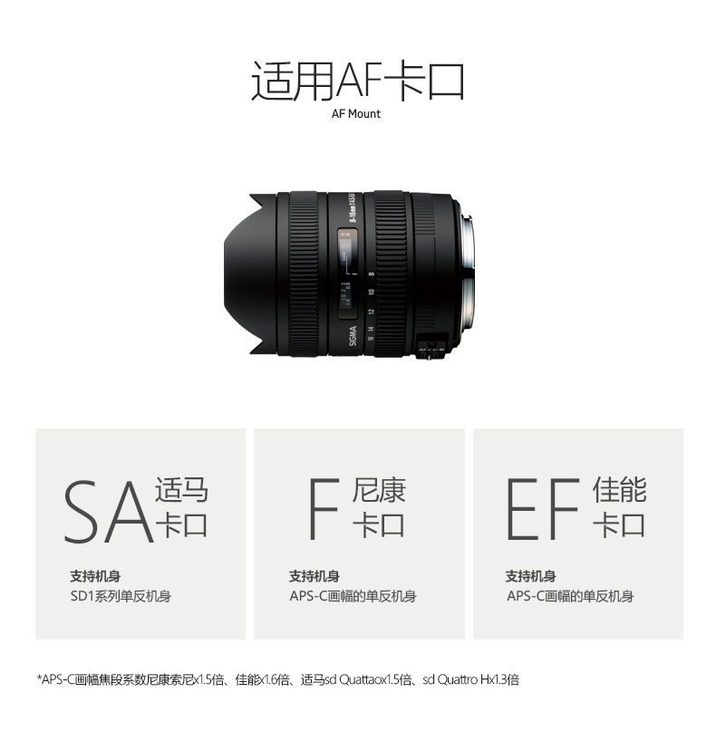 • *本产品用于适马以外品牌相机,可能会产生部分不兼容的现象详情请见适马官方网站或垂询适马官方热线4008528080