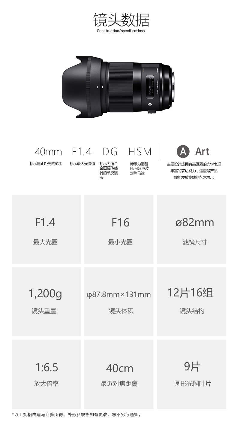 适马/sigma Art 40mm F1.4 DG HSM 全画幅大光圈人像扫街挂机镜头 拍婚庆