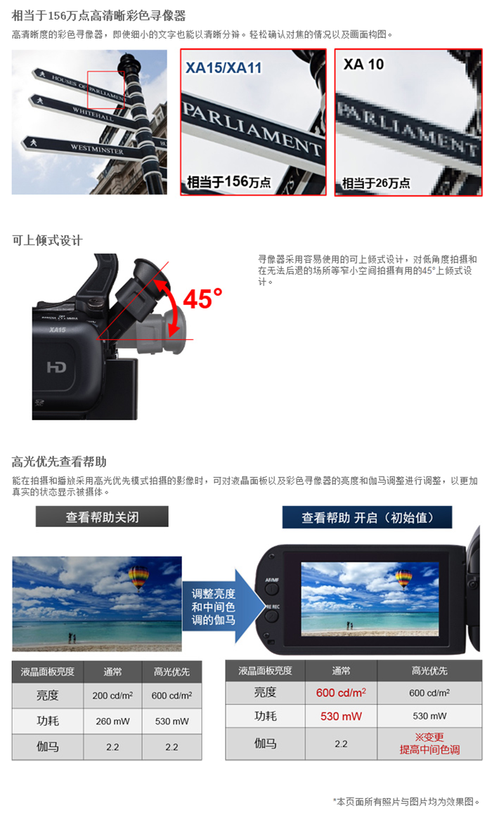 | 白平衡 | 自动白平衡,日光,阴影,多云,荧光灯,荧光灯H,钨丝灯,K值色温,自定义设置 | ||||