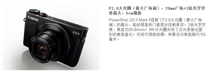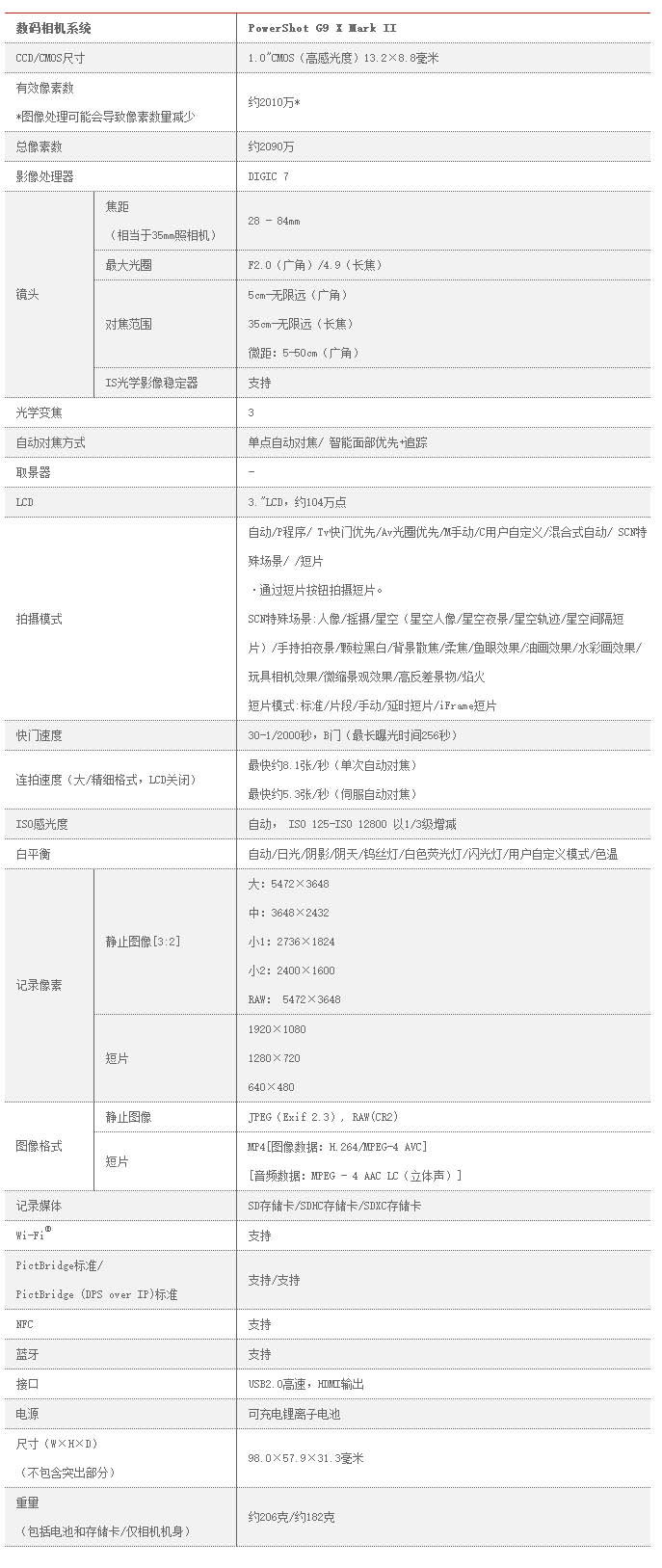 | 数码相机系统 | PowerShot G9 X Mark II | |
