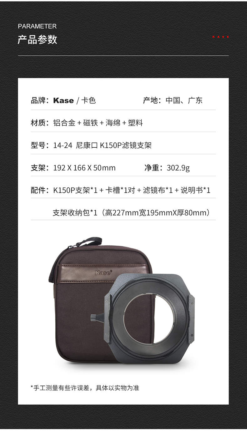 【旗舰店】Kase卡色 方形滤镜支架 适用于尼康14-24 F2.8 1424 MCUV cpl 偏振滤镜