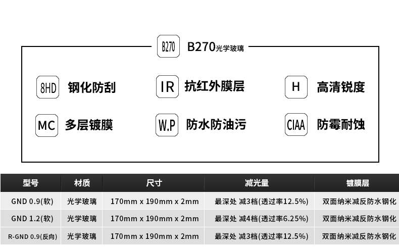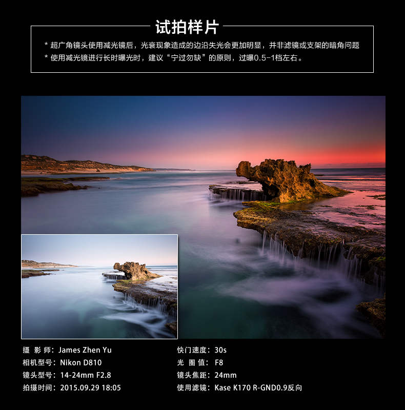 Kase卡色 中灰渐变镜 170mm 反向渐变GND 14-24 方形插片滤镜