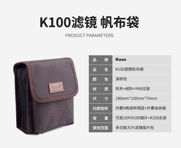 【旗舰店】Kase卡色 100mm方形帆布滤镜包 滤镜盒 可收纳100x150mm方形渐变镜 100x100方形减光镜及滤镜架