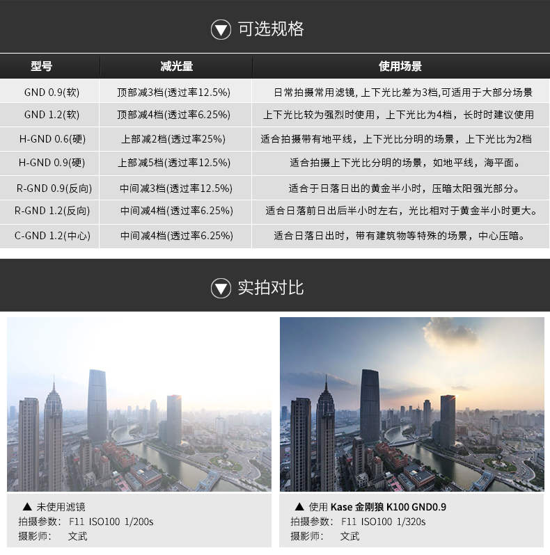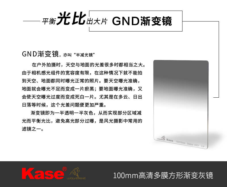 Kase卡色 方形渐变镜 100mm 金刚狼耐摔镜GND中灰渐变镜 插片滤镜