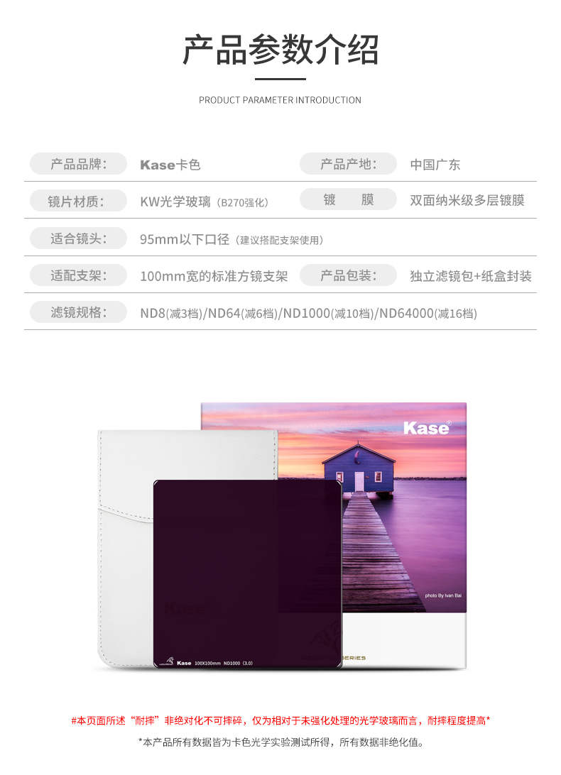 Kase卡色方形减光镜插片滤镜100mm金刚狼耐摔ND中灰密度镜长曝光