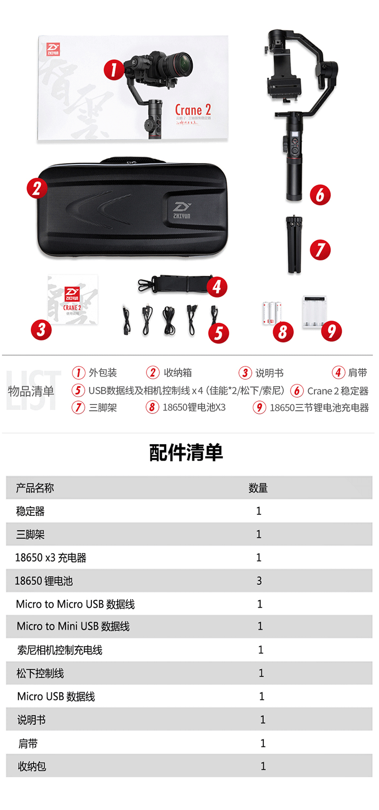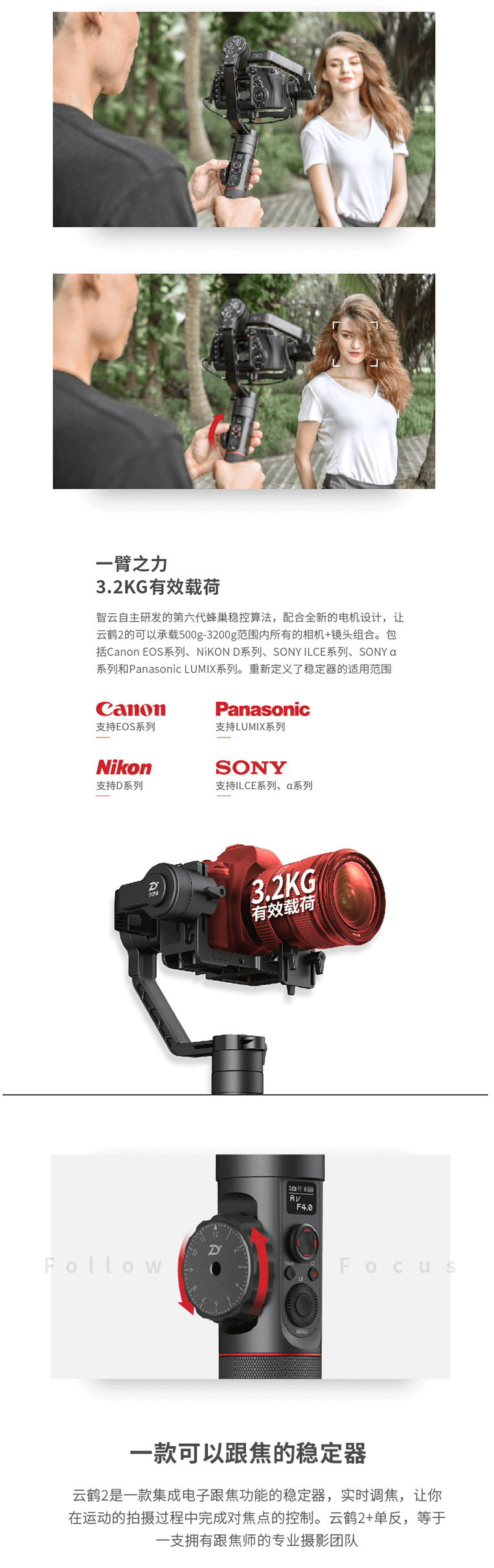 智云(zhi yun)云鹤2代Crane 2稳定器 微单单反手持三轴云台 相机稳定器
