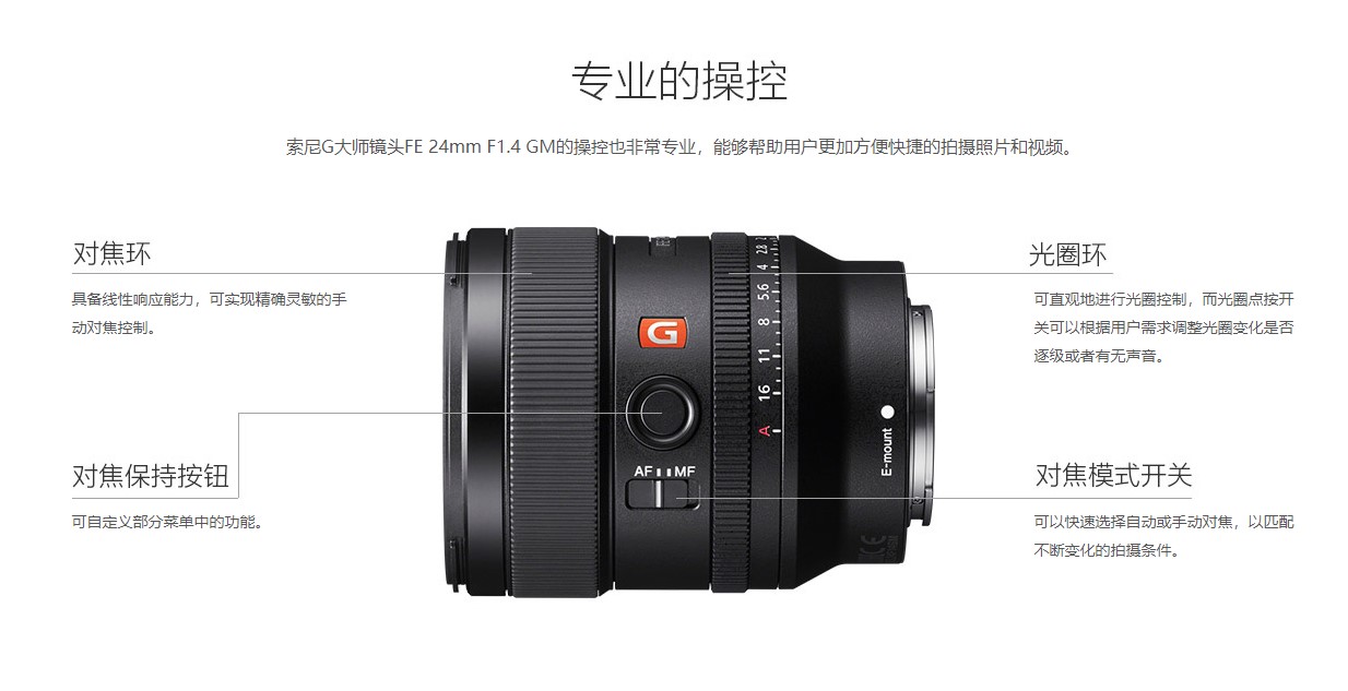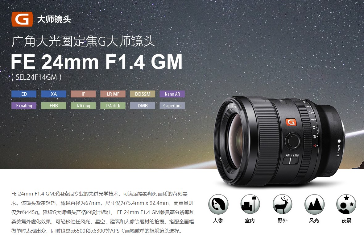 索尼 SEL24F14GM 全画幅广角大光圈定焦G大师镜头 (FE 24mm F1.4 GM)
