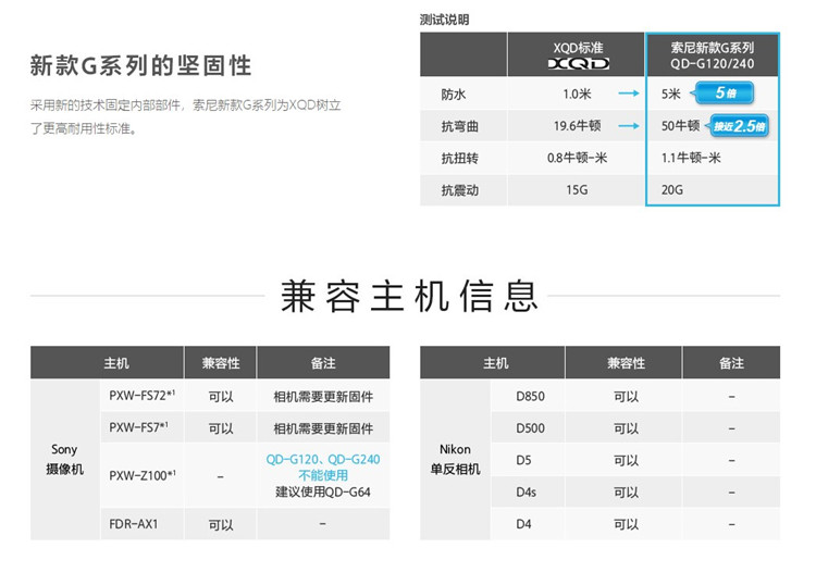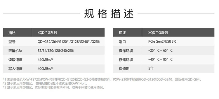 索尼 XQD Sony QD-G256E/J CN XQD存储卡—G系列 FS7M2 FS7 Z100 AX1E闪存卡