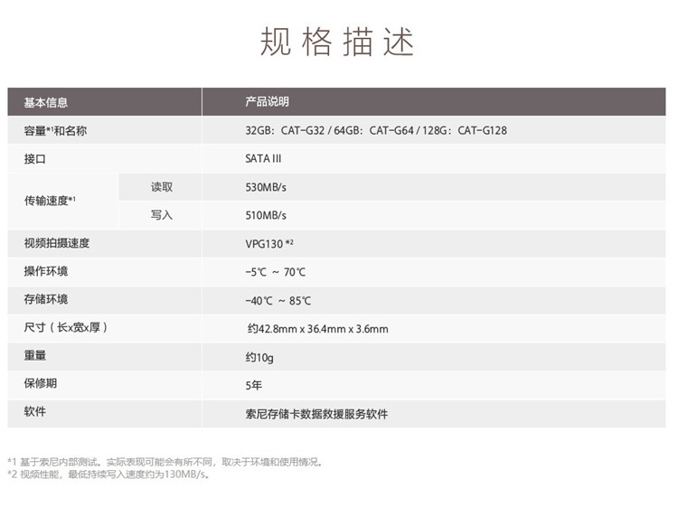 索尼 sony CAT-G128/T SYM CFast存储卡—G系列 适用于佳能XC10 XC15 1DX2