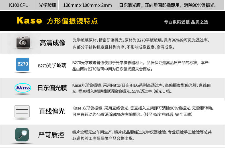 Kase卡色 方形偏振镜 100mm CPL滤镜 偏光镜 插片滤镜