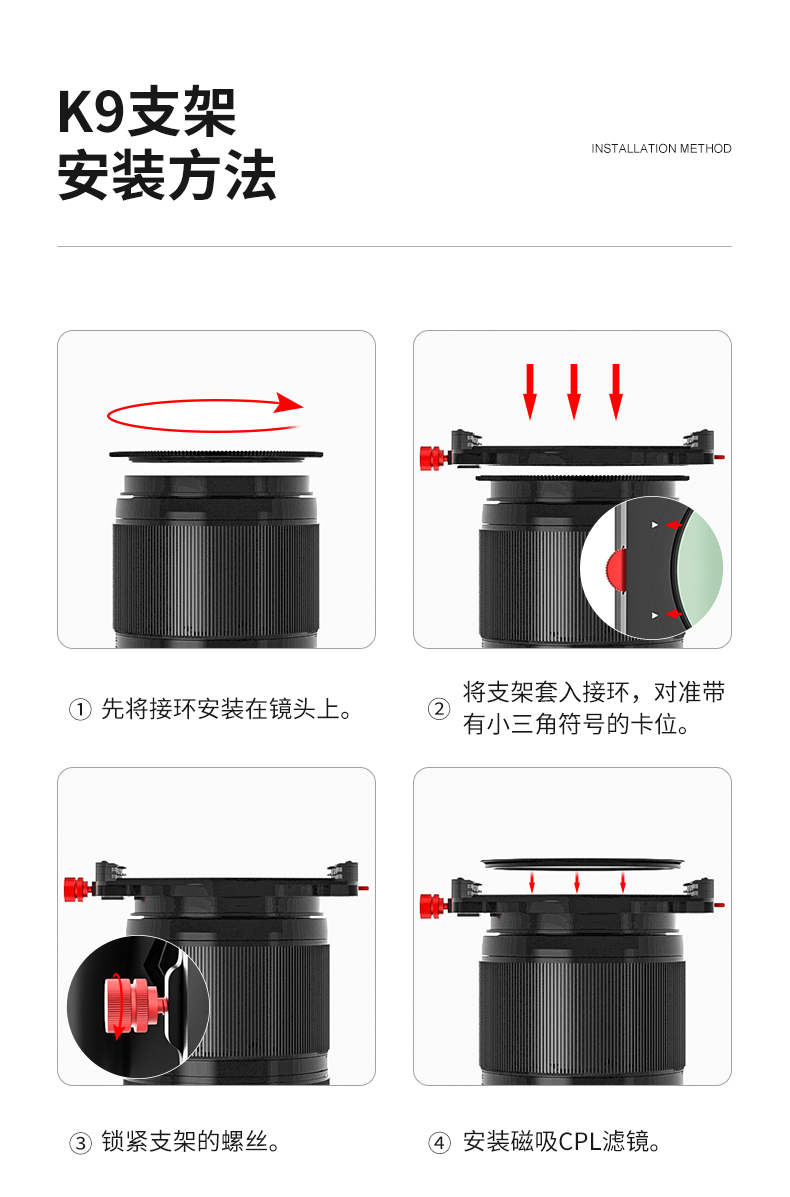 Kase卡色 K100-K9支架套装纤薄滤镜支架磁吸偏振镜方形滤镜方镜架