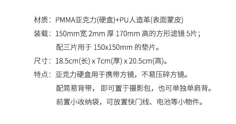 Kase卡色 方形滤镜包 150mm方镜收纳盒渐变镜减光镜便携斜挎单肩滤镜袋快门线收纳摄影包可装5片