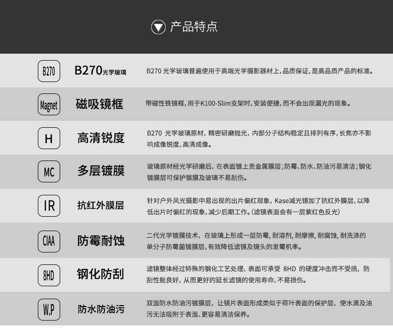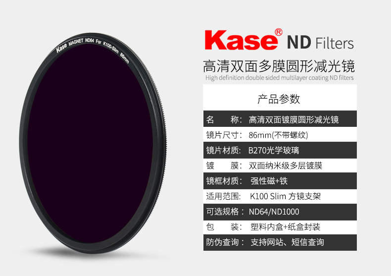Kase K100 Slim K8支架套装用磁吸减光镜 中灰密度镜 ND滤镜
