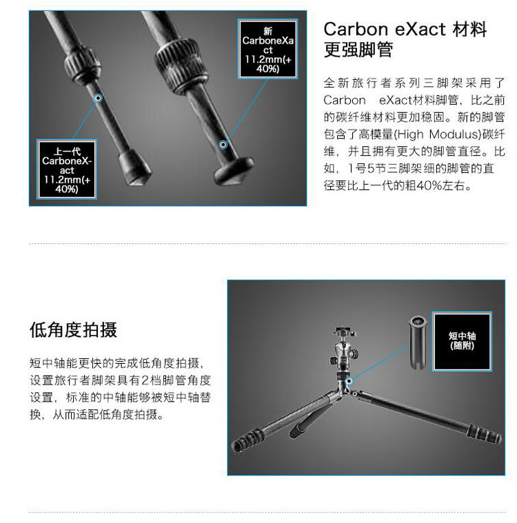 得益于更坚固的CarboneXact 脚管和全新旅行者G锁扭,同上一代产品相比 功能上得到了更大的提升