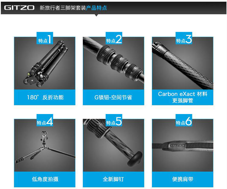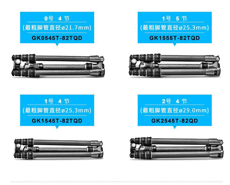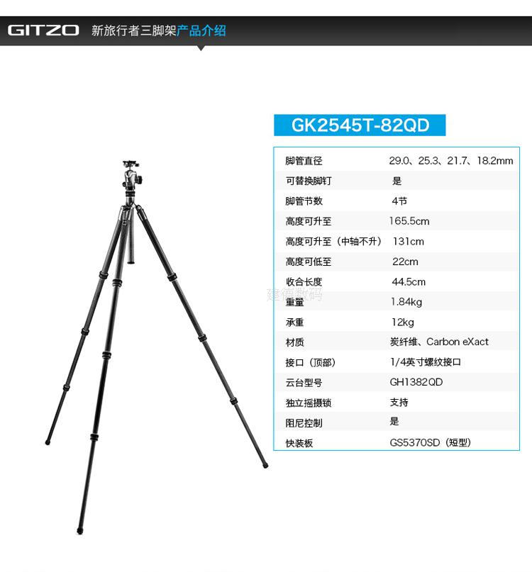 捷信Gitzo GK2545T-82QD旅行者2号碳纤维4节单反相机三脚架套装