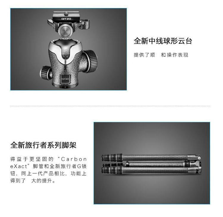 全新旅行者系列脚架套装 全新中线球形云台 二硫化钨球体图层 创新的锁定机构 独立全景锁定 新快装板锁定系统