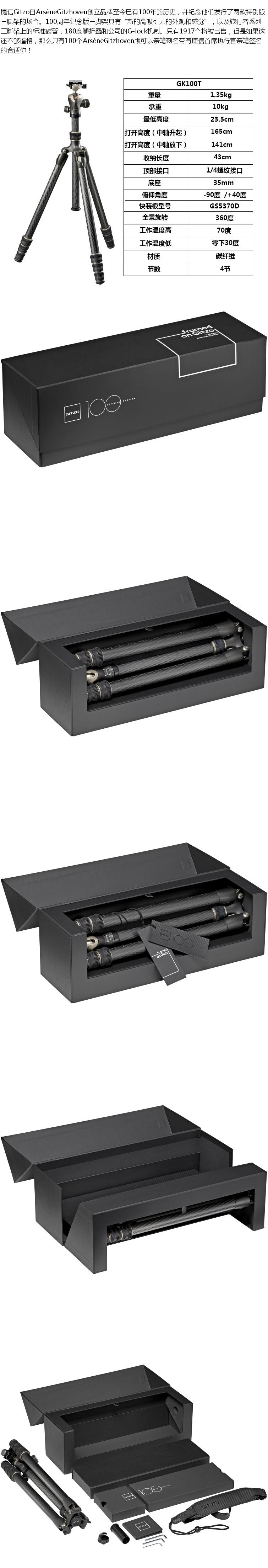 捷信 GITZO GK100T 100周年纪念版 碳纤维 三脚架 云台 套装 全球1917件