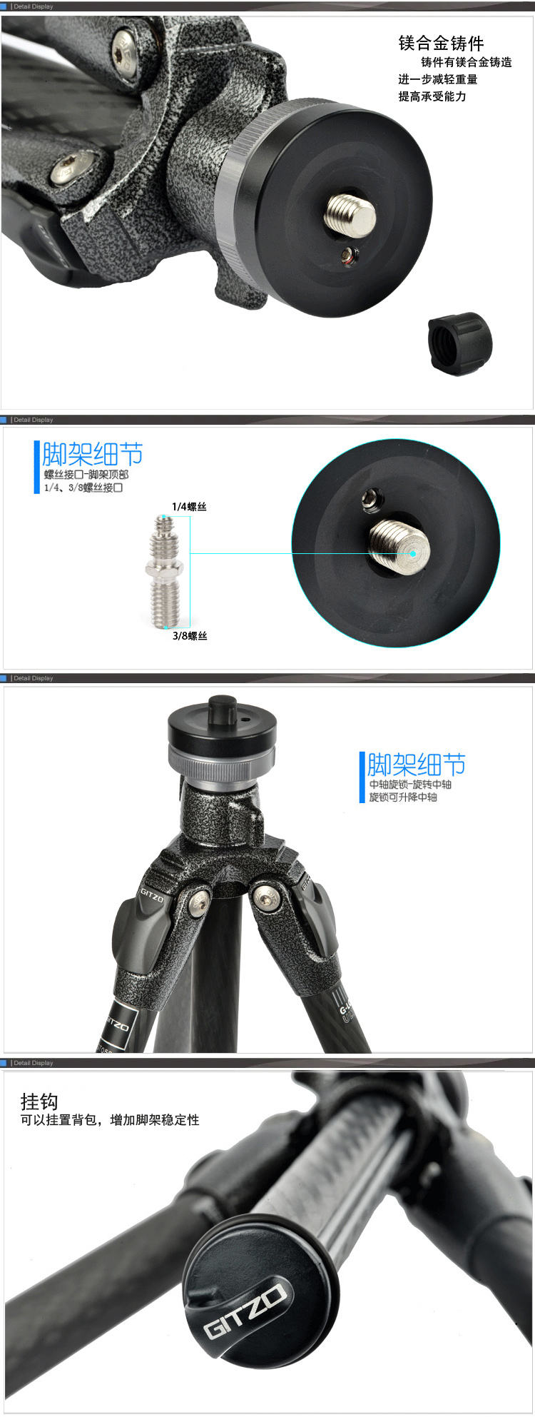 铸件有镁合金铸造进一步减轻重量提高承受能力 中轴旋锁-旋转中轴旋锁可升降中轴 脚架扳扣-掰开扳扣可控制脚管张开角度