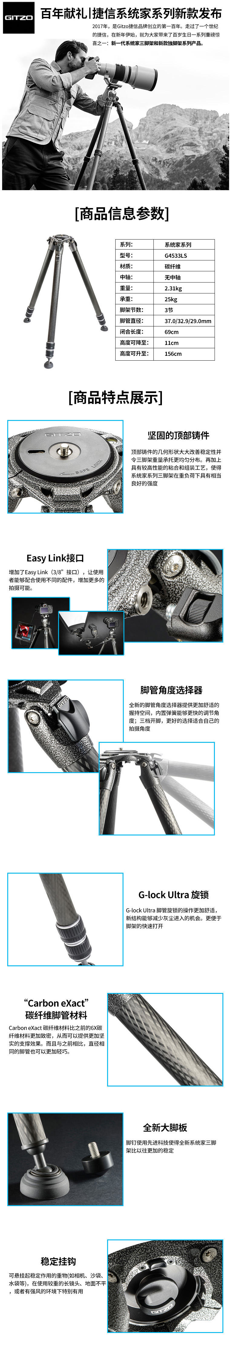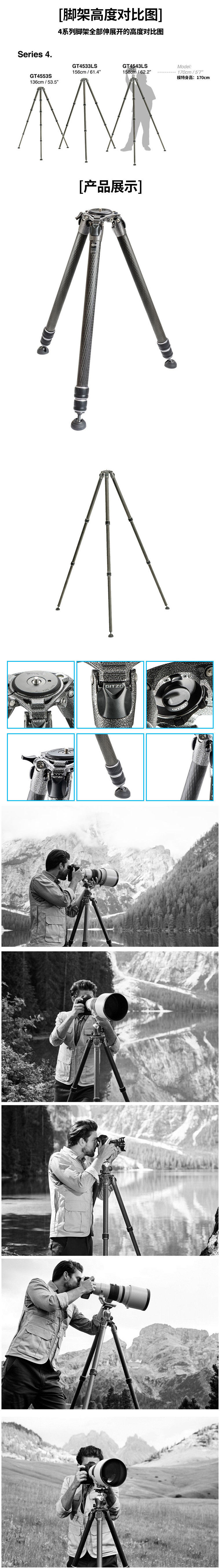 捷信 GITZO GT4533LS 系统家系列 碳纤维 3节三脚架 数码 单反 相机 无中轴 支架