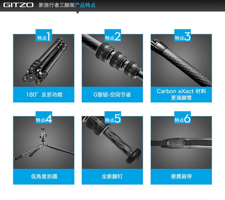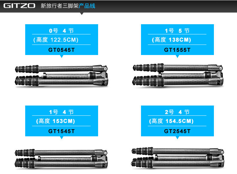 捷信 GITZO GT1555T 碳纤维 三脚架 单反 微单 相机 旅行者 反折 便携碳素
