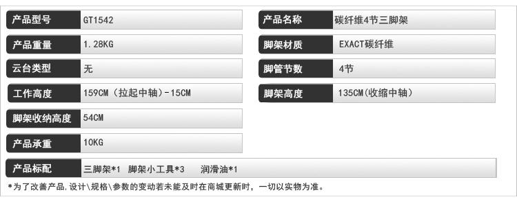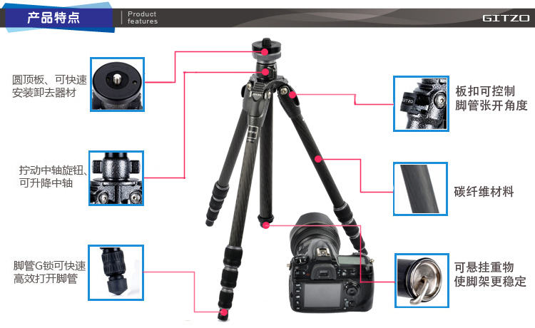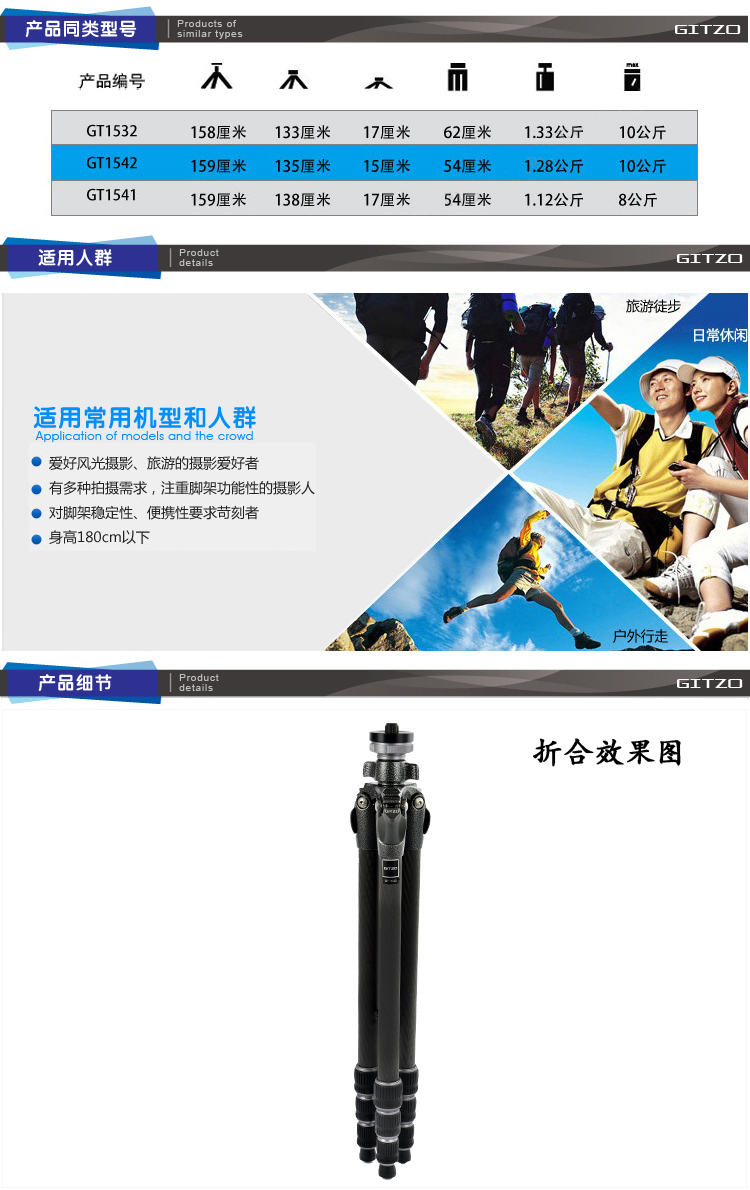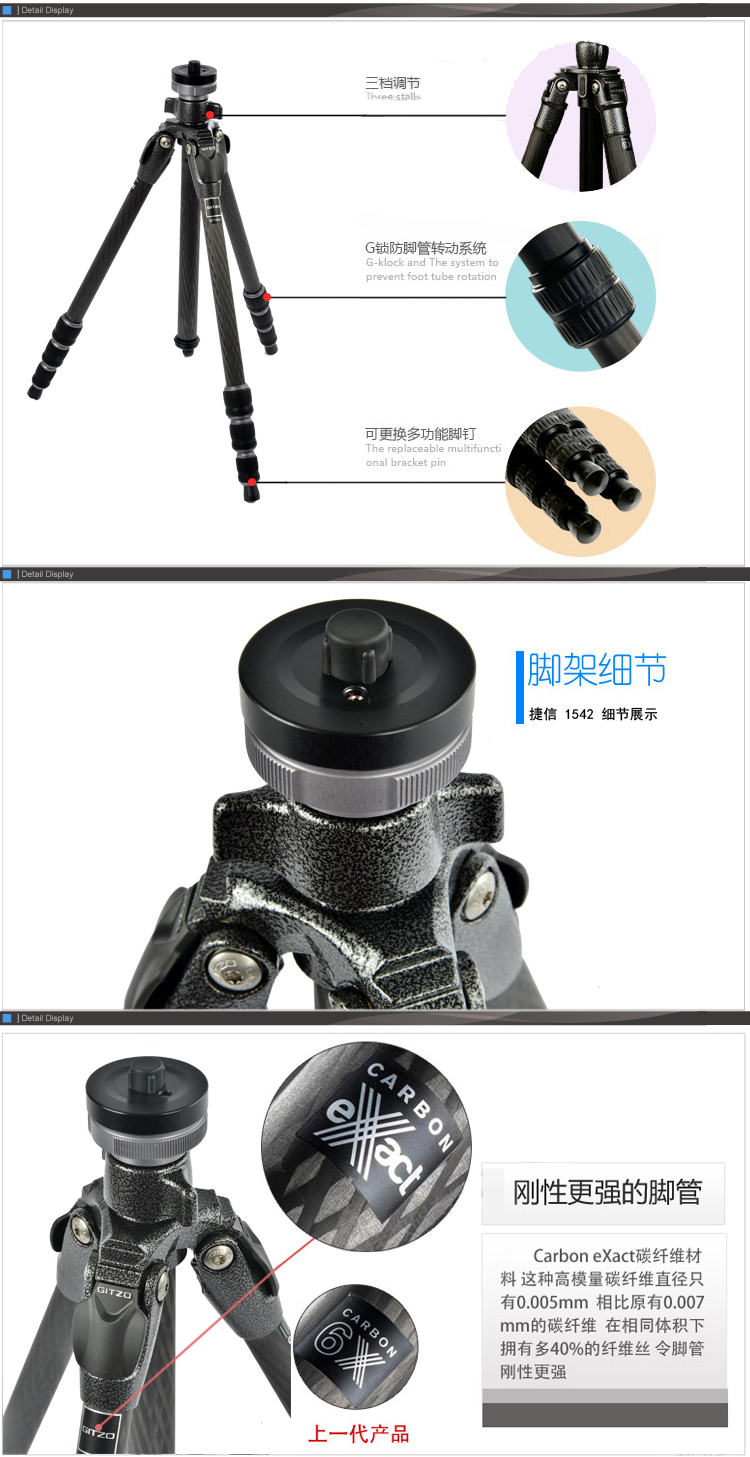 捷信 GITZO GT1542 eXact碳纤维 4节脚管 三脚架 1号登山者 快速中轴