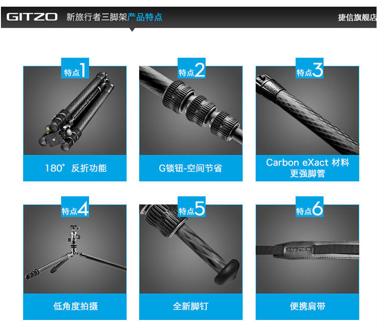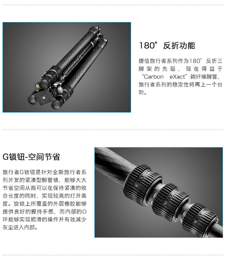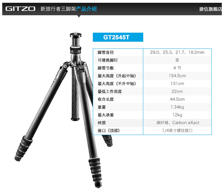 捷信 GITZO GT2545T 旅行者系列碳纤维4节单反数码相机便携三脚架