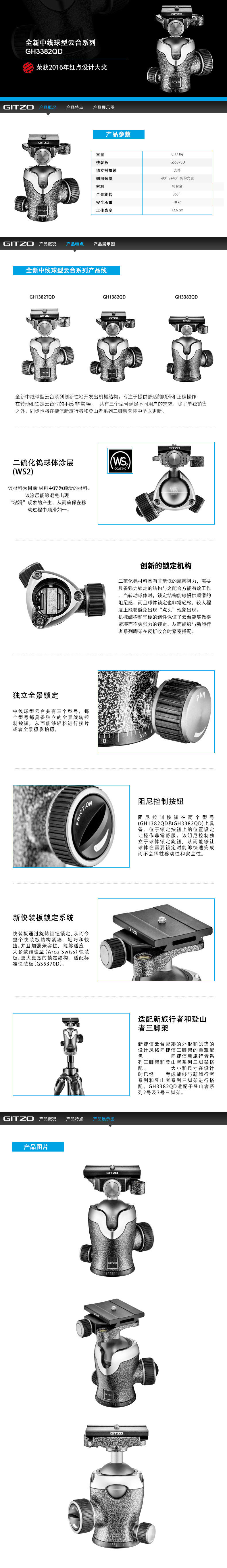 捷信 GITZO GH3382QD 单反 相机 铝合金 中线 球型 云台