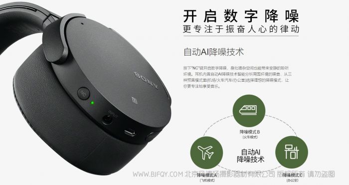 按下"NC"键开启数字降噪,身处嘈杂空间也能带来安静的聆听环境。耳机内置自动AI降噪技术智能分析周围环境的噪音,从三种预置模式里(机场/火车汽车/办公室)选择理想的降噪模式,让你更专注地享受音乐。