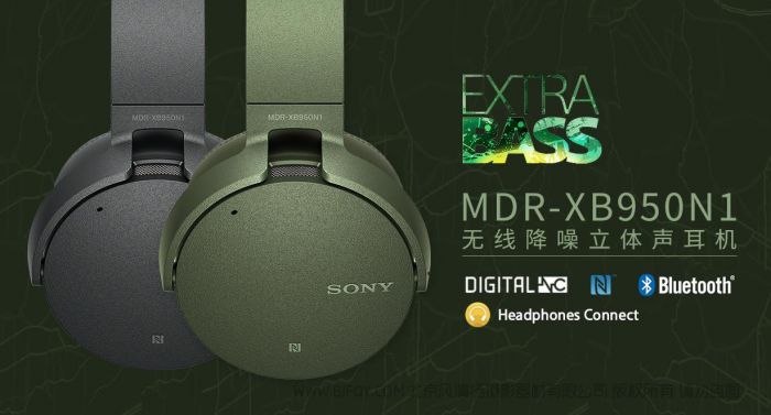索尼 Sony MDR-XB950N1 无线降噪立体声耳机 绿 黑色