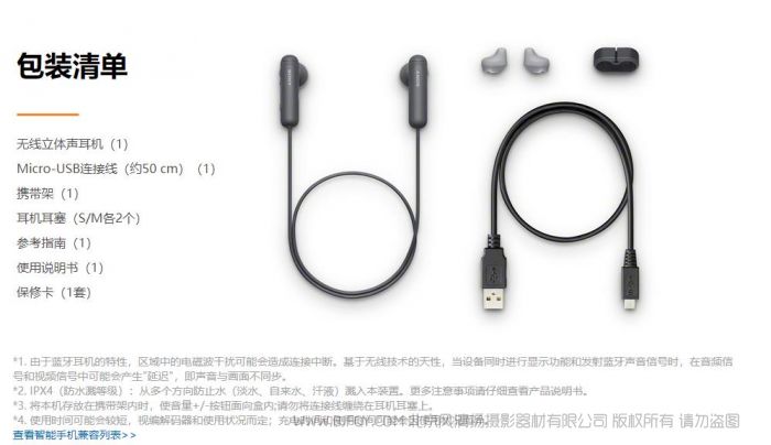 *2. IPX4(防水溅等级):从多个方向防止水(淡水、自来水、汗液)溅入本装置。更多注意事项请仔细查看产品说明书。