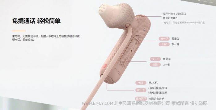 来电时,无需拿出手机,轻按一下右耳上的快捷按钮即可接听电话,简单轻松。