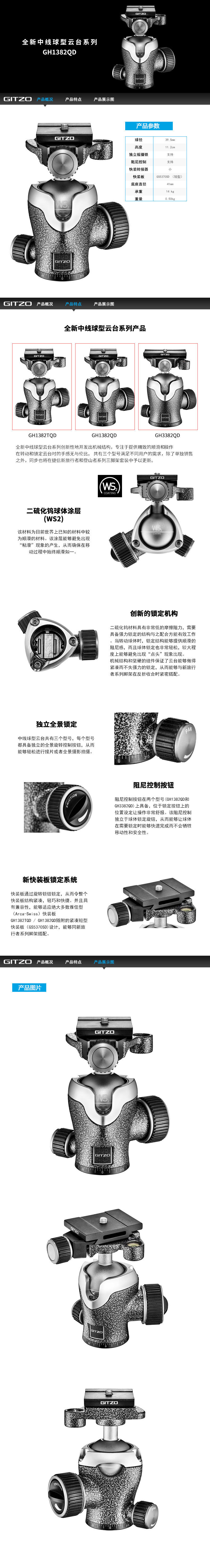 捷信 GITZO GH1382QD 单反 相机 铝合金 中线球型云台