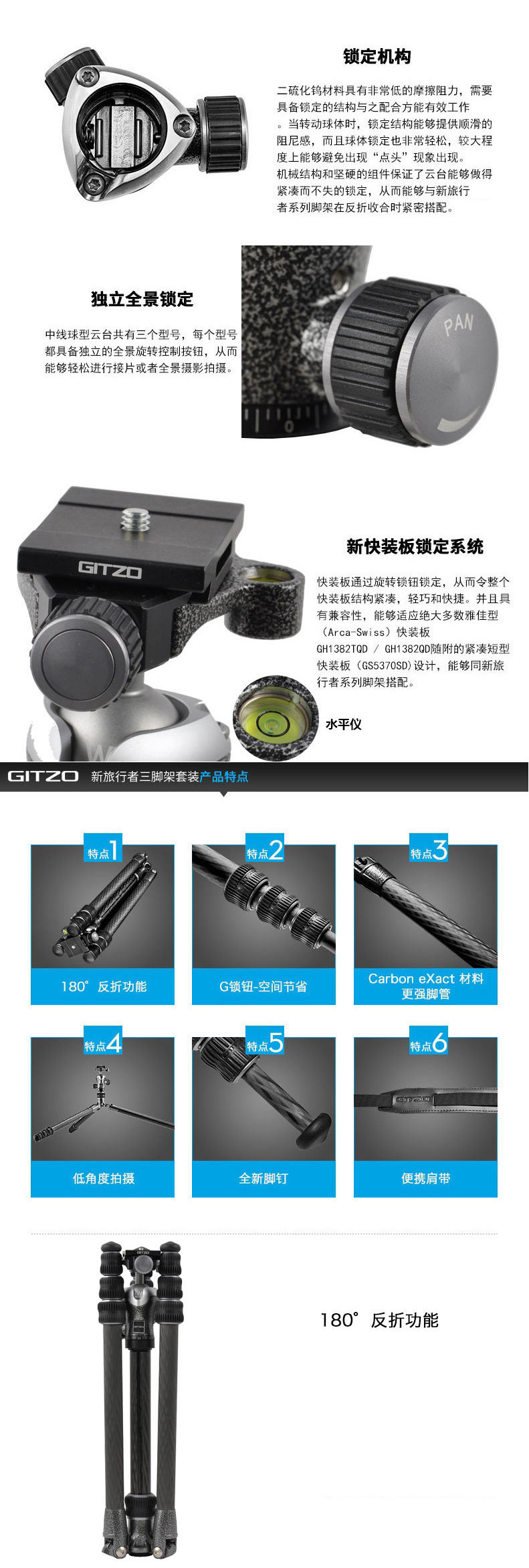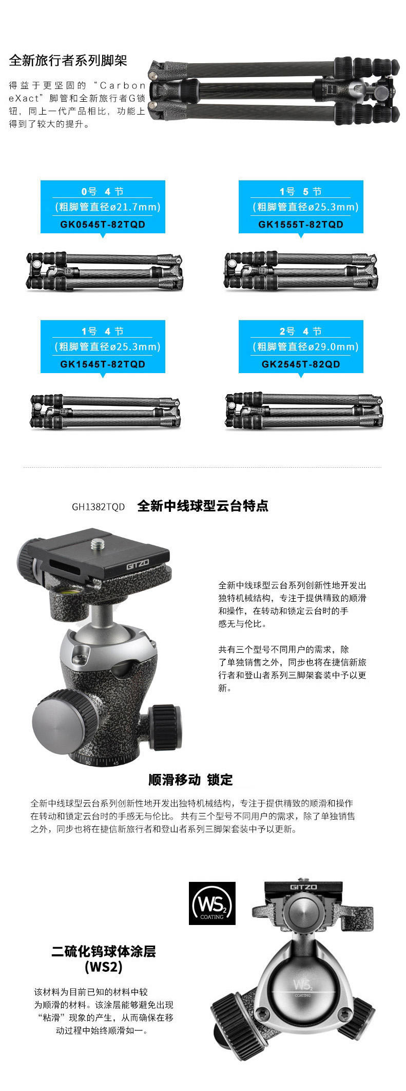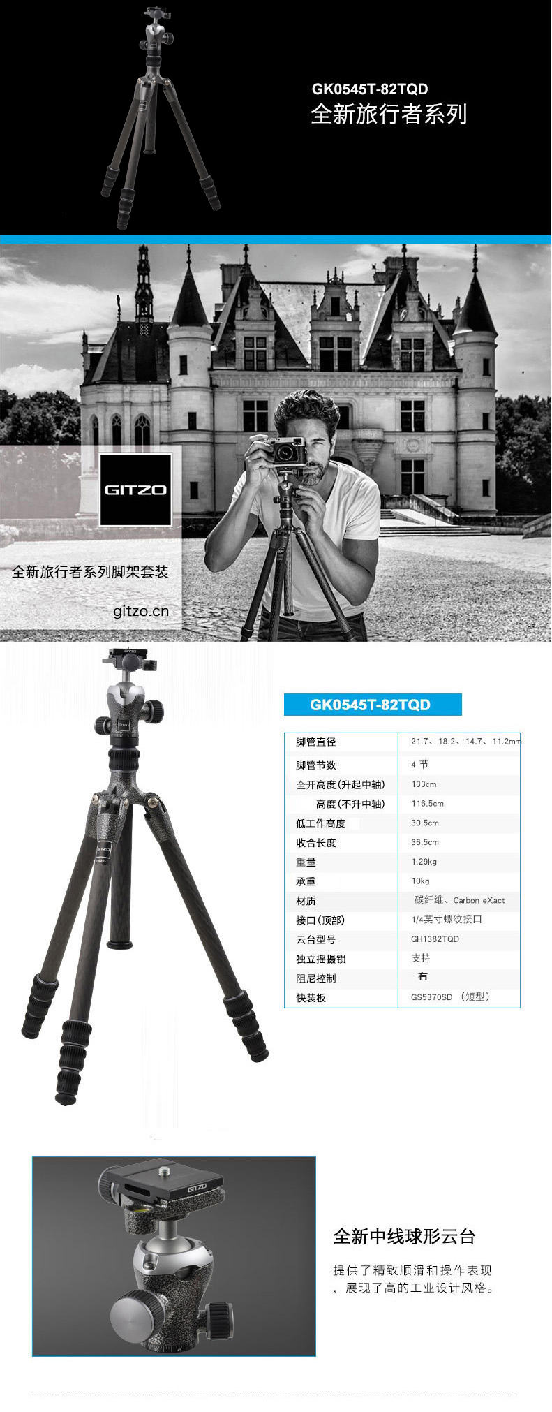 捷信 GITZO GK0545T-82TQD 旅行者 碳纤维 4节 单反 相机 三脚架 云台套装