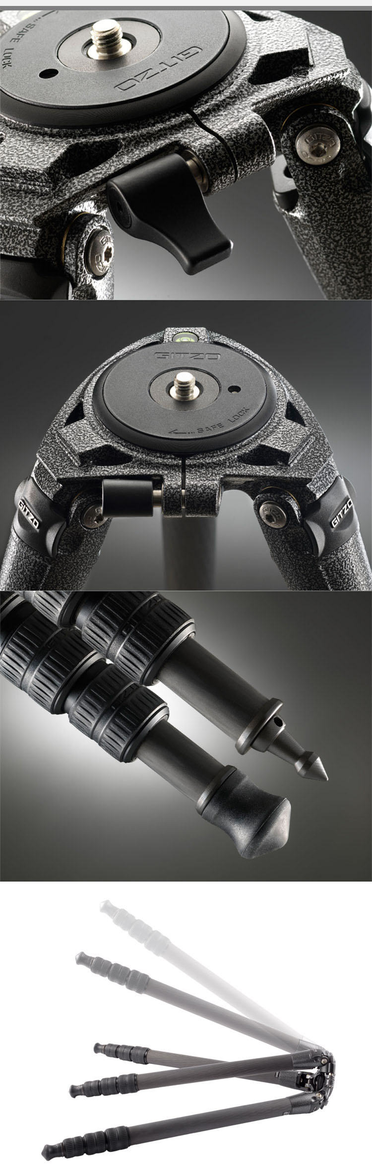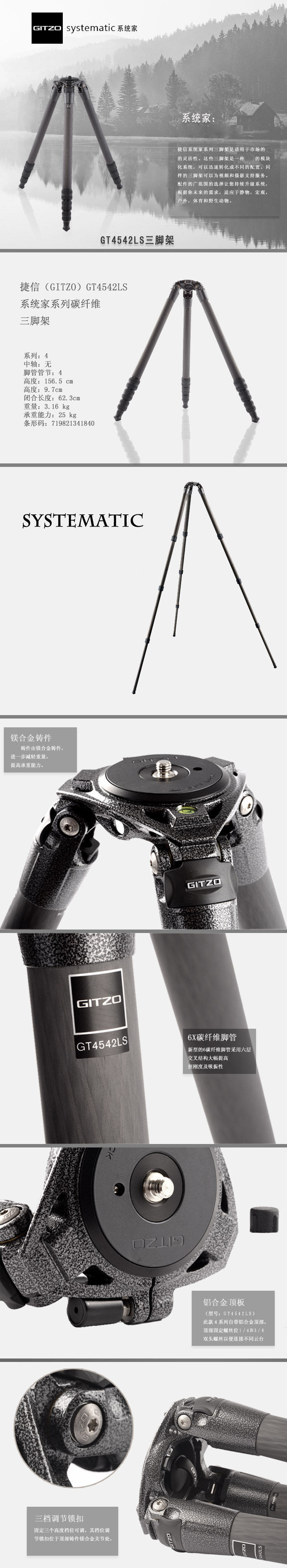 捷信 GITZO GT4542LS 4号 组合式 碳纤维 三脚架4节 镁合金铸件 系统家