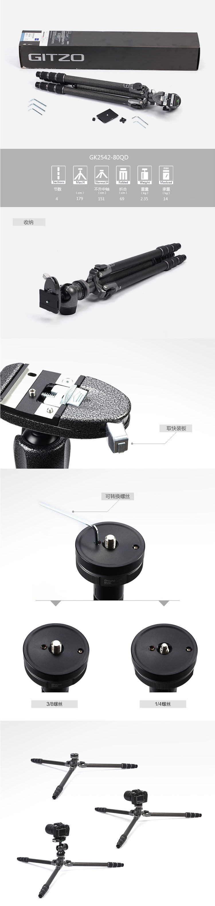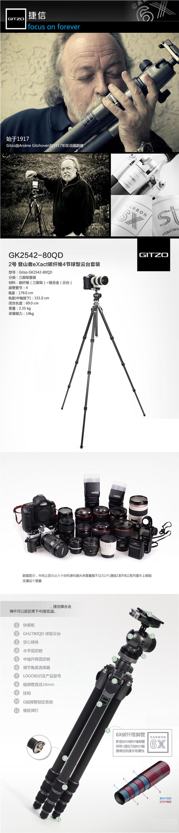 GITZO 捷信旅行者1系中线球型云台带快装板 GH1382TQD