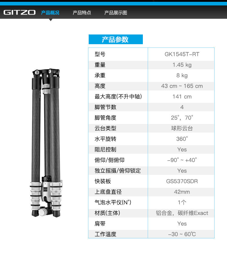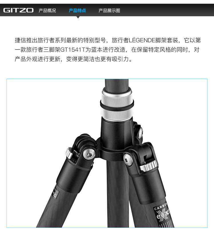 捷信 GITZO GK1545T-RT 三脚架旅行者Légende 旅行便携碳纤维脚架套装