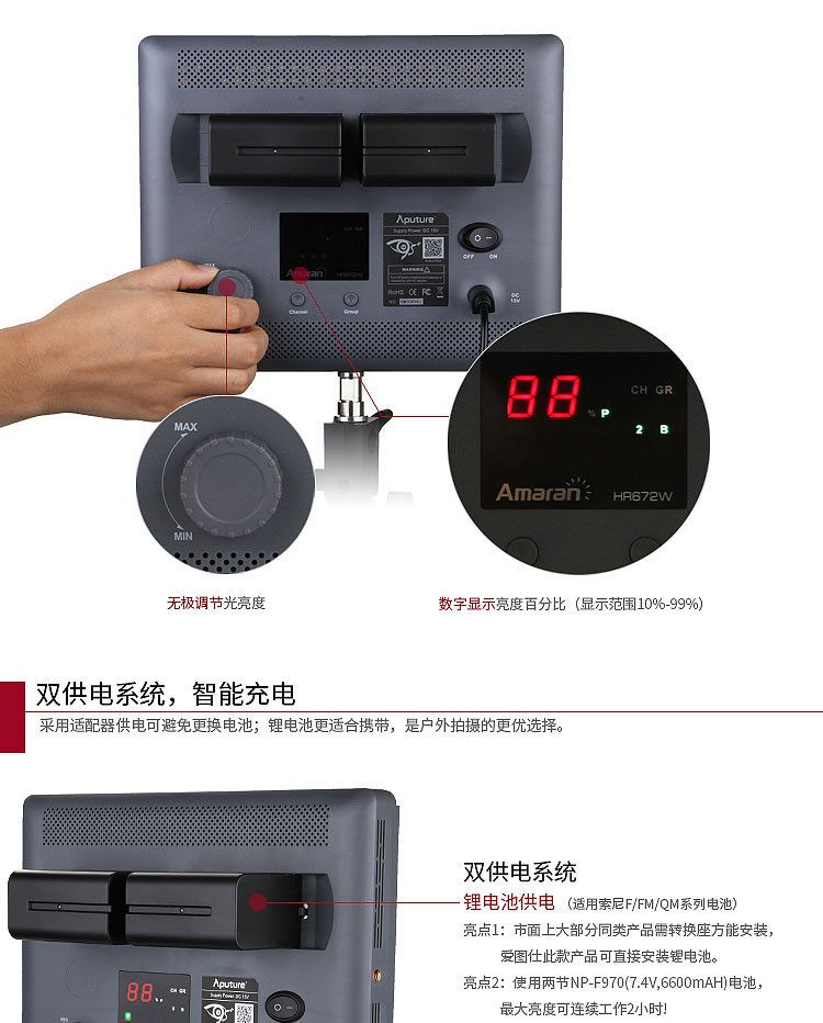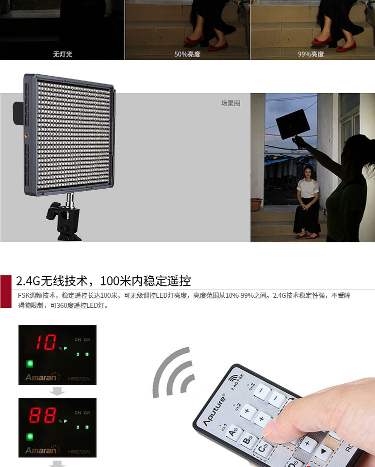 【停产】Aputure/爱图仕HR672W LED摄影补光灯淘宝直播设备视频拍摄常亮灯