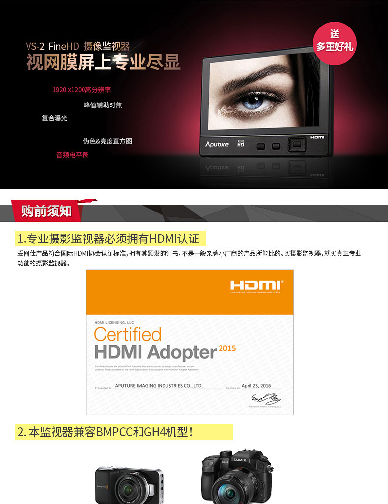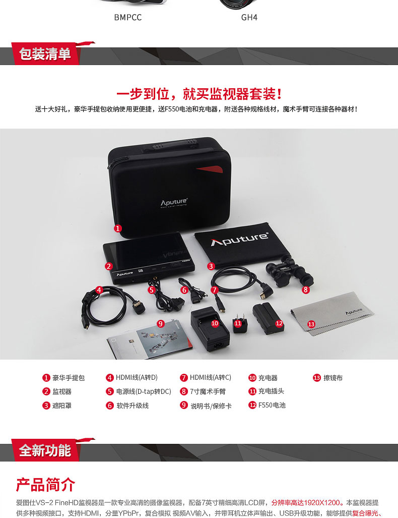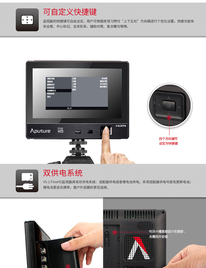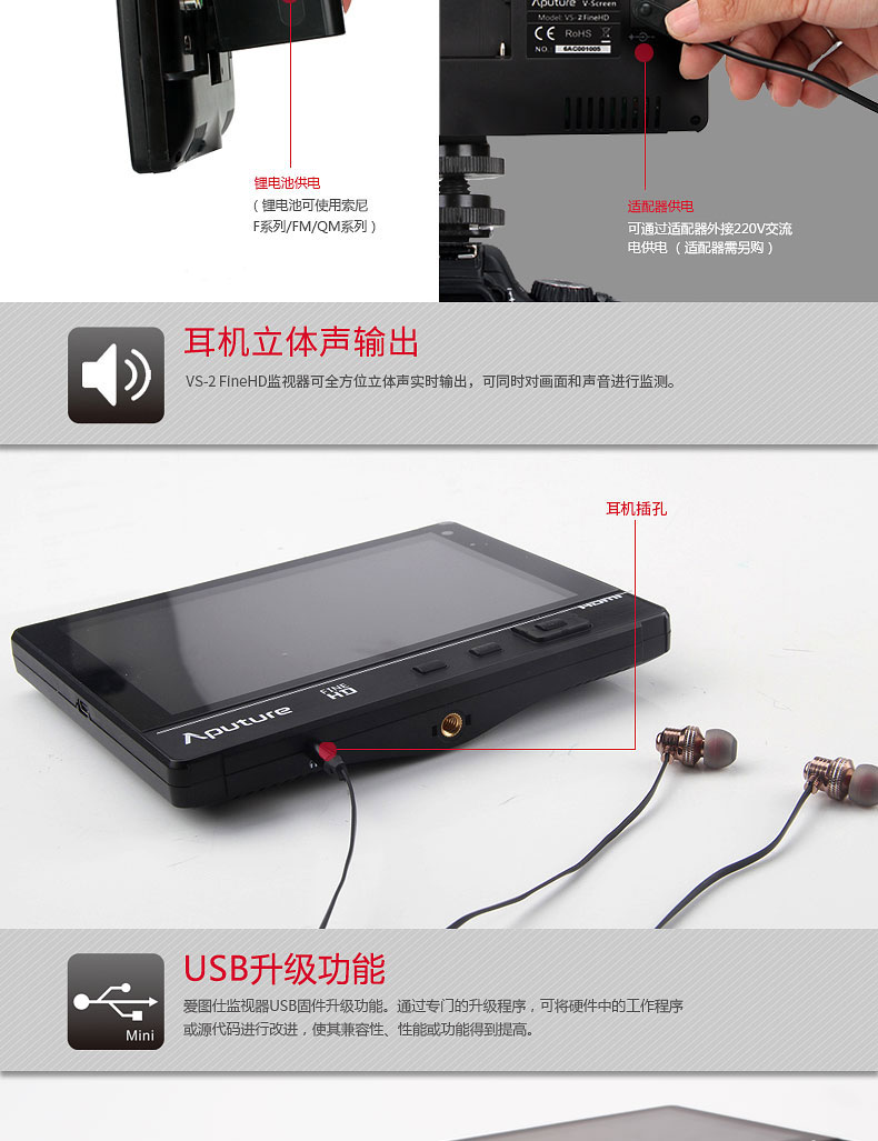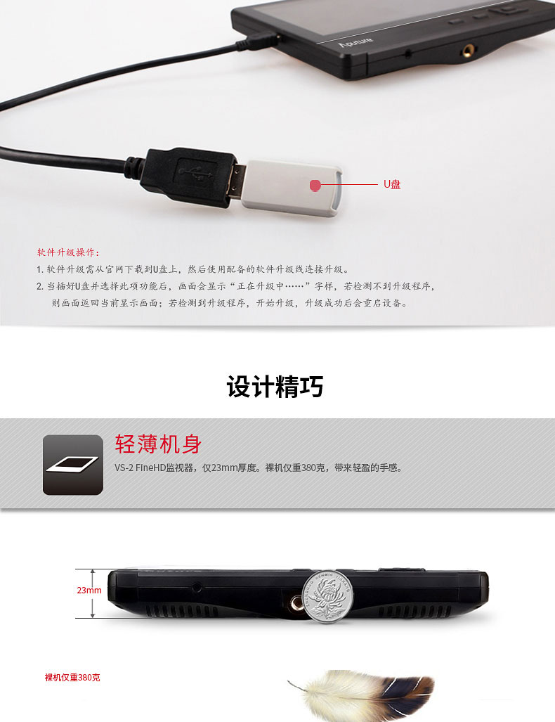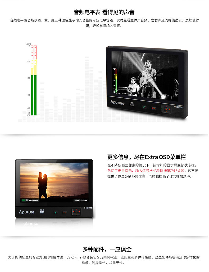 2.好消息,即日起,VS-2 FineHD监视器全面支持4K输入,老用户升级可在官网页面下载升级包,具体升级方法可参看该页面。官网地址:http://www.aputure.com/cn/V-Screen-VS-2-FineHD/update