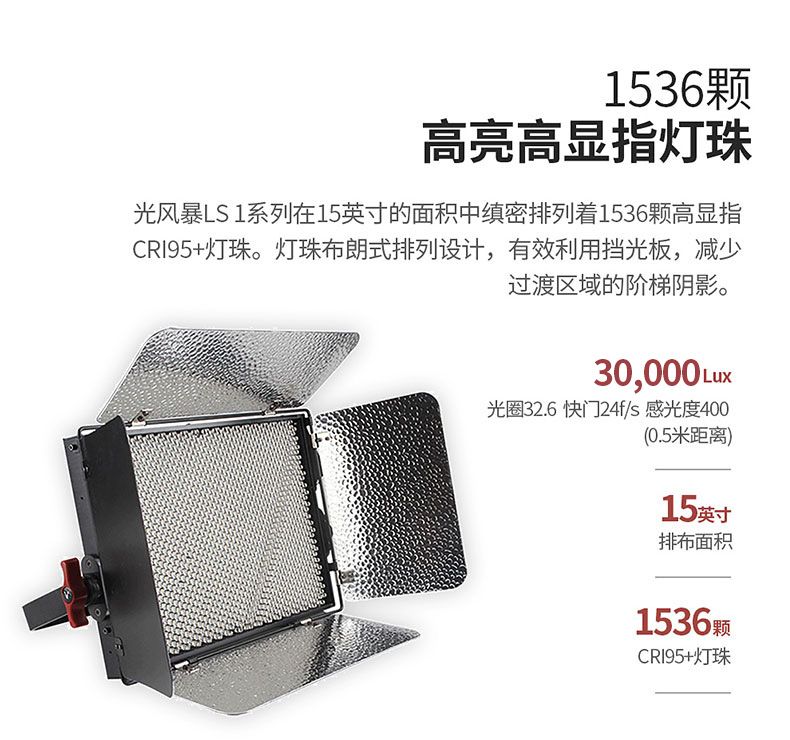 光风暴LS 1由1536个灯珠组成,经过精心设计和制造,其CRI值超过95。它投射的光线看起来更加自然和准确,为您呈现更真实的色彩。
