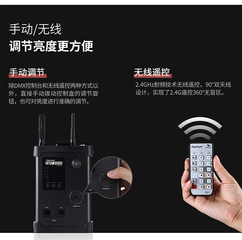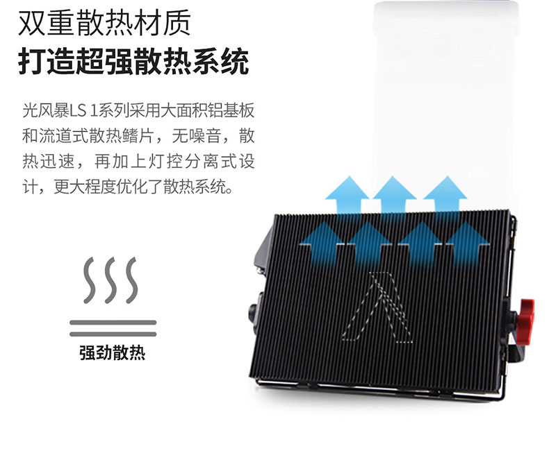 “光风暴1”独特的灯控分离设计更大程度的优化了灯体后面板的散热系统。由于采用了低重心设计,大大降低了灯具支撑系统的负担。操作也不局限于灯面板,而是集中在控制盒上。此外,可更换电池的供电方式也让布光更灵活。