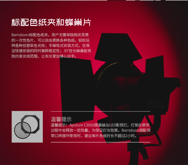 温馨提示:爱图仕barndoors不含色纸,需要实现色彩创意,需自行准备各色色纸开始您的创作!
