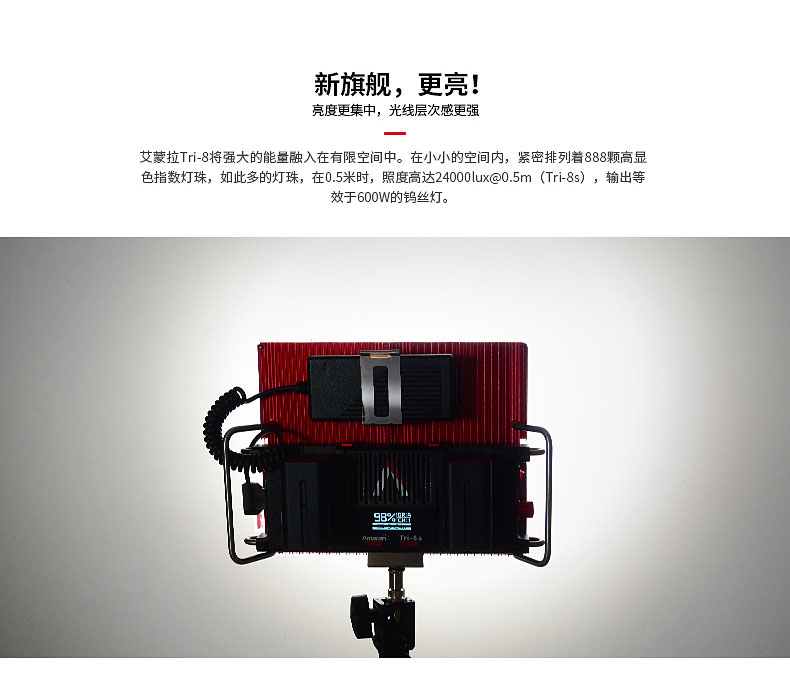 新一代旗舰版艾蒙拉Tri-8,它为你展现的,是迄今一款更亮更强的艾蒙拉影视灯。