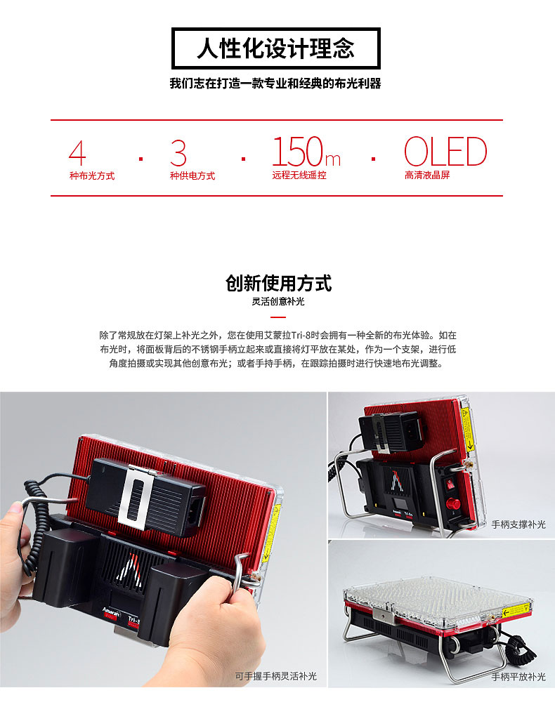 自始至终,艾蒙拉影视灯背后的设计理念从未动摇,那就是打造一款便携,优质的LED摄影灯。