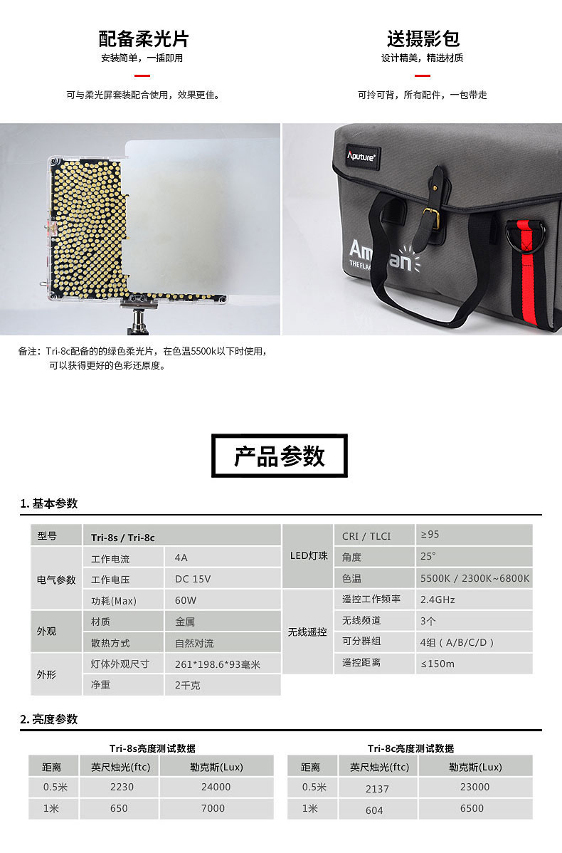 【停产】Aputure/爱图仕 Tri 8s/c LED摄影摄像影视灯外拍直播补光常亮灯